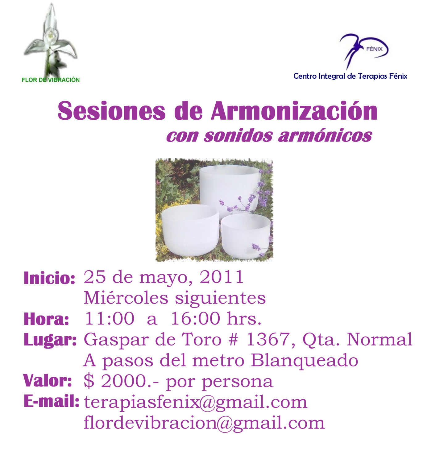 Inscripciones o Consultas: terapiasfenix@gmail.com o flordevibracion@gmail.com