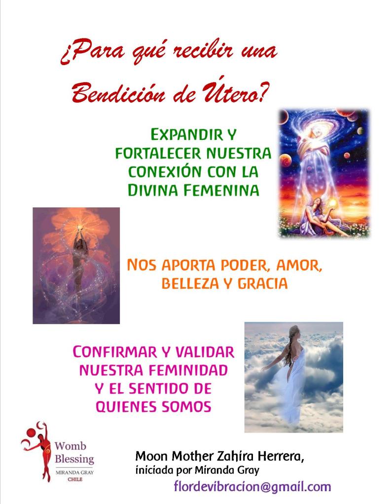 La Bendición de Útero es a la vez una sanación y una comunión con la Divinidad Femenina. Se realiza de forma personalizada, siendo una experiencia transformadora que inicia profundos cambios espirituales y conexiones en la vida de una mujer. Es un rito de paso, una liberación del pasado y un viaje a un nuevo mundo de esperanza, amor y fuerza.